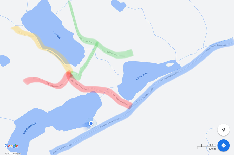 Lac Bob (souligné en vert)Chemin privé   BBR Association BBRbbrassociation@gmail.com : L’association BBR est aucunement responsable de la barrière et de son opération.